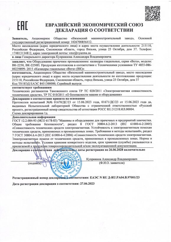 Диаметр 514 мм у гладильных каландров ВК-2250 еще больше увеличивает качество глажения благодаря большей площади глажения и способствует повышенной производительности каландра (скорость до 8 м/мин)