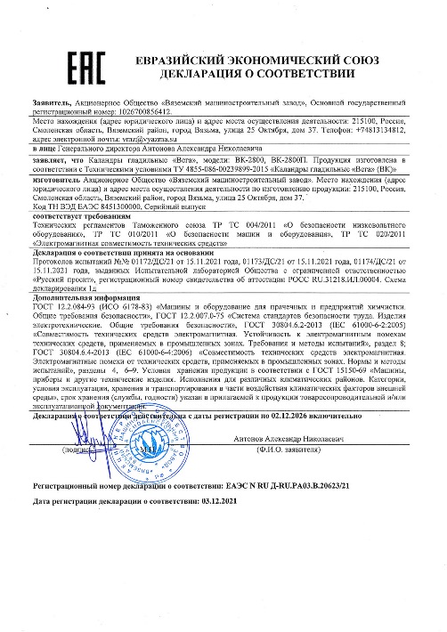 Каландры ВК-2880 возвратного (или проходного) типа предназначены для глажения белья с остаточной влажностью до 50 %