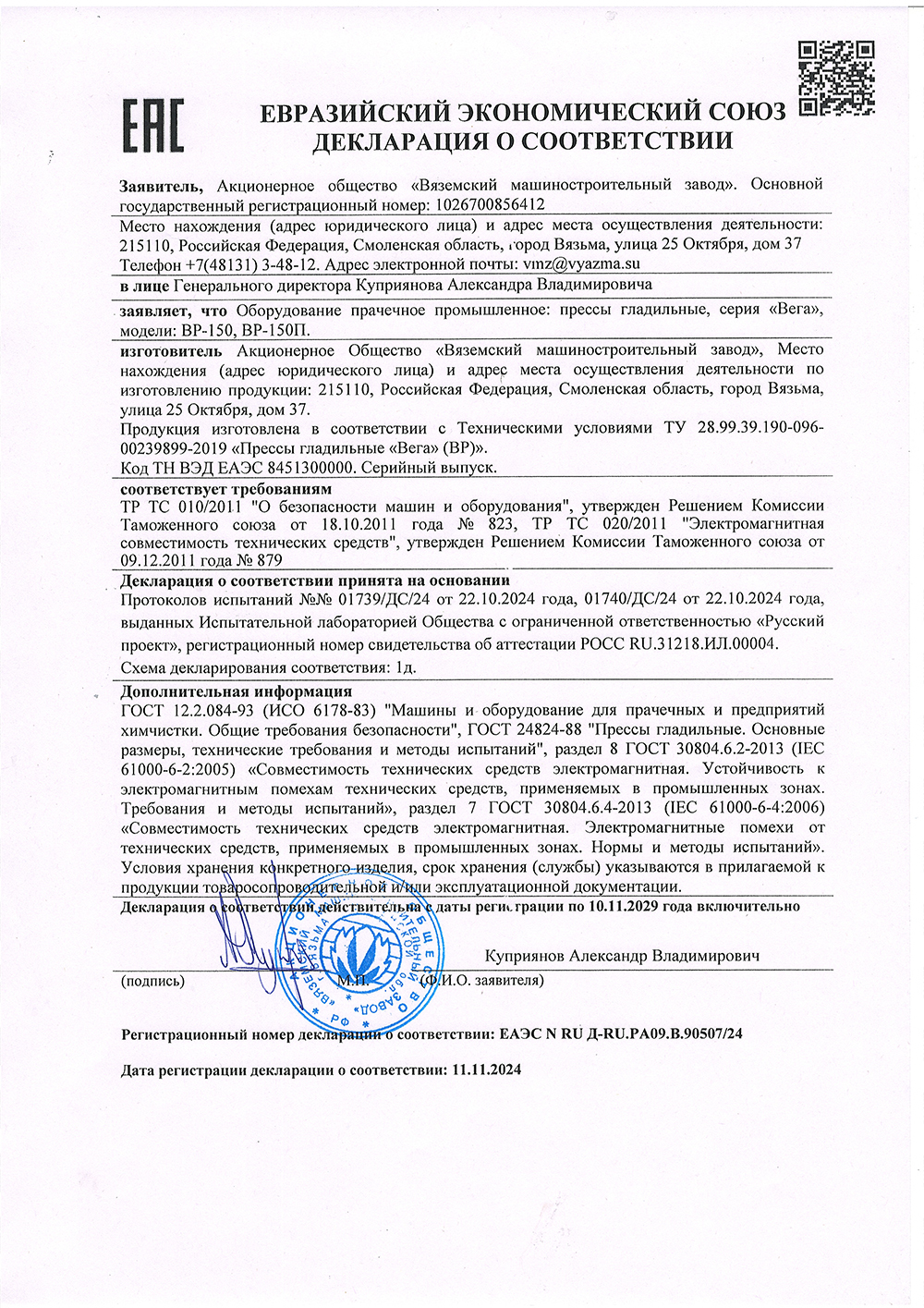 Гладильные прессы ВР-150П могут применяться как в прачечных, так и на ряде швейных производств, изготавливающих фасонную одежду