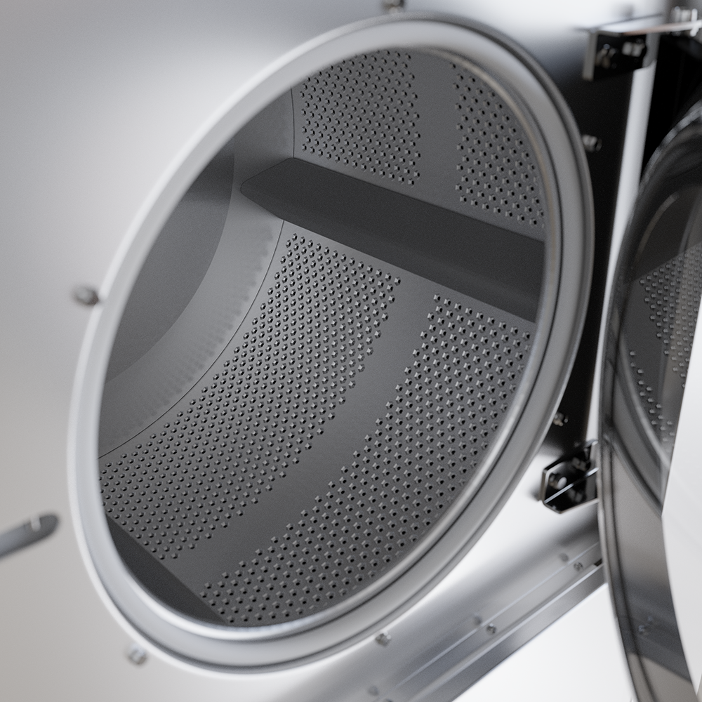 Снижает вибрацию и нагрузку и обеспечивает минимальный уровень шума в прачечной